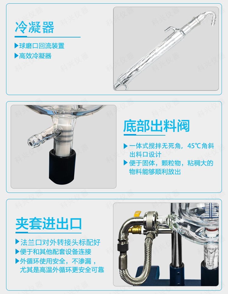| 夾套接口 | 玻璃法蘭口35mm(配不銹鋼轉(zhuǎn)接頭1/2螺紋) | 玻璃法蘭口35mm(配不銹鋼轉(zhuǎn)接頭1/2螺紋) | 玻璃法蘭口35mm(配不銹鋼轉(zhuǎn)接頭1/2螺紋) | 玻璃法蘭口35mm(配不銹鋼轉(zhuǎn)接頭1/2螺紋) | |